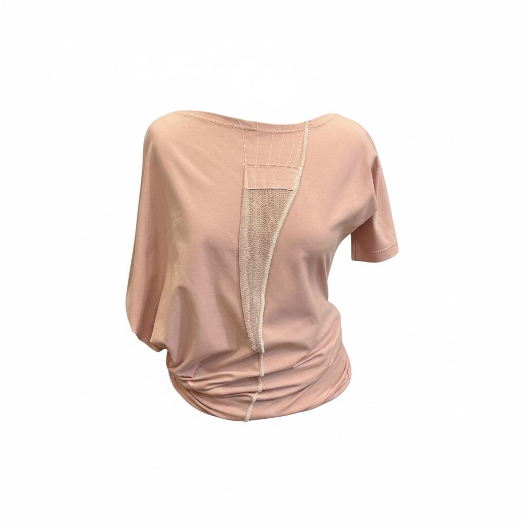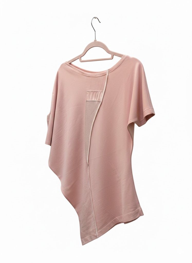 Unikatna bombažna majica s kratkimi rokavi je asimetričnega kroja in izdelana iz materiala bombažni jersey. Lepo se prilega telesu in sledi vsakemu gibu z novo obliko. Na bluzi so minimalistično uvrščeni unikatni tekstilni našitki v roza odtenkih. Za ženske, ki so rade elegantne in opažene!